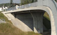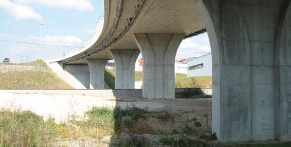 The local road which connects the town of Trebnje with its industrial zone spans the railway track with an overpass. The sleek, semi-integral structure, with the total length of 95 m, is continuous over five spans with a prestressed RC slab of superstructure. Similarly as in the next, the Trebnje viaduct, the middle supports have an interesting funnel shape.