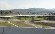 The Trebnje overpass and viaduct, characterised by sleek superstructures and uniform elegant supports, subtly span the shallow terrace below Trebnje.
