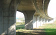 The Trebnje viaduct, which connects the primary road with the town of Trebnje, spans the Temenica river and two railway tracks. The sleek, semi-integral structure, with the total length of 180 m, is continuous over seven spans with a prestressed RC slab of superstructure. Similarly as in the next, the Trebnje overpass, the middle supports have an interesting funnel shape.