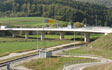 The overpass and viaduct, characterised by sleek superstructures and uniform elegant supports, subtly span the shallow terrace below Trebnje.