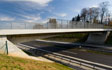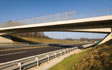 The innovative integral construction of the overpass with the single span of 44 m and parabolic intrados is built in a shallow cut. End abutments are inclined which causes the decrease of the frame structure span to the length of 31 m.