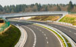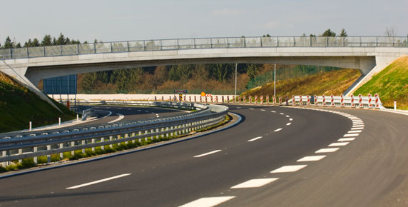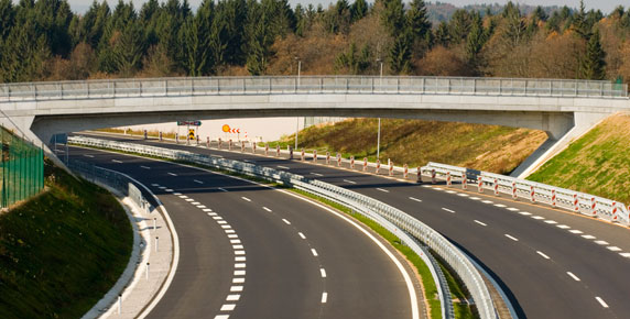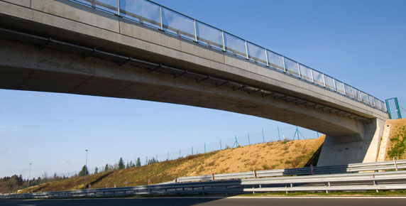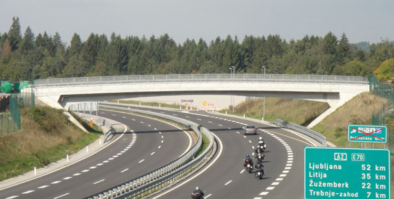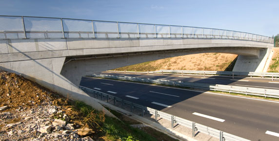 The overpass with a longer single span of 45 m with variable prestressed R.C. superstructure height is built in a partial cut nearby the Ponikve junction.