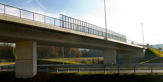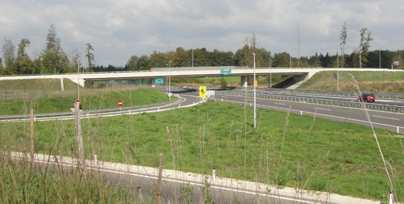 In the Ponikve junction, an up-to date integral monolithic frame structure of overpass with total length of 85 m was built. The middle supports have shallow strip foundations as well as end abutments which have sufficient elasticity enabling a considerable total overpass length. The prestressed R.C. superstructure has three spans with longer central span of 34m, which enables the omitting of awkward middle support in the central reserve area of the MW.