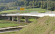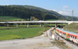 The overpass and viaduct, characterised by sleek superstructures and uniform elegant supports, subtly span the shallow terrace below Trebnje.